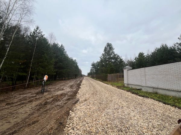 Организован удобный и презентабельный подъезд. Участок угловой, с двух сторон примыкает к поселковой границе. Расположен в дальней и самой тихой части поселка, максимально приватный и уединенный.