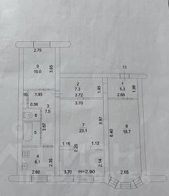 • Изолированные комнаты: 23 м² (гостиная), 19 м² (кабинет), 10 м² (спальня)