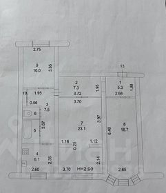 Изолированные комнаты: 23 м² (гостиная), 19 м² (кабинет), 10 м² (спальня).
