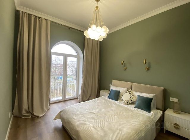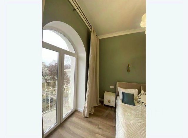 Переступив порог, вы попадаете в царство просторных, светлых залов под огромными, парящими потолками. Их украшает изысканная, ажурная лепнина, искусно реставрированные карнизы и благородные люстры, отбрасывающие на стены игру теплого, золотистого света. Сердце гостиной — изящная, плавная арка, которая ведет к завораживающему французскому балкону. Это ваша личная смотровая площадка, откуда открывается умиротворяющий, живописный вид.